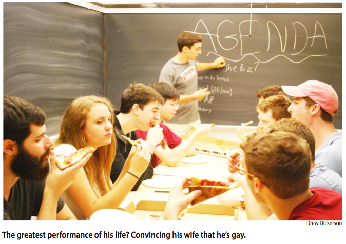 “It was inspiring to hear how much he believes in us,” said John Massey ’15, whose mediocre acting skills have not dissuaded Henderson from looking right into Massey’s eyes and telling him he has something special. “He really made me think ‘Hey, anything’s possible!’”