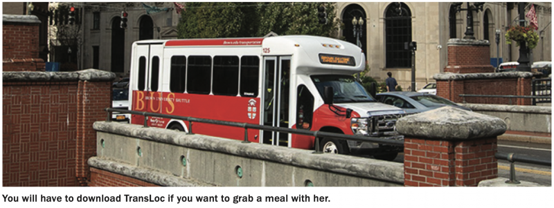 “I can provide you with point-to-point transportation to and from areas not accommodated by the Brown Evening Shuttle route after 7 PM (5 PM after Daylight Savings Time ends in November) as part of my commitment to a safe and secure campus environment,” said Talia, requesting to see your Brown ID before walking with you. “Like other Brown University Shuttle services, my service is available to all Brown University students (including Brown/RISD dual-degree students), faculty, and staff members.”