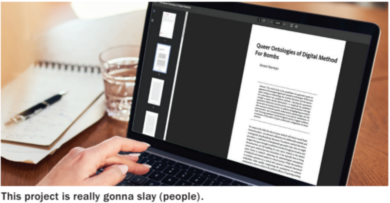 “I realized there was a common denominator between the projects that were safe from cuts. They were for serving our nation’s great military industrial complex,” said Professor Amani Norman, looking up from her work on exploring the intersectionalities between textuality and race in queer narratives. “And I figured if you can’t beat ’em, bomb ’em!”
