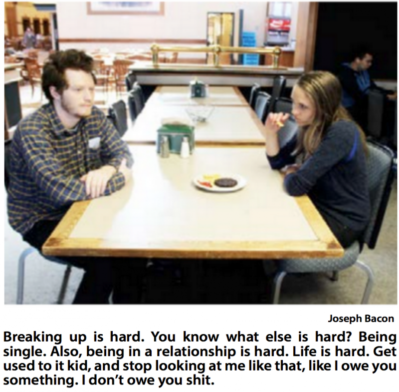 “Hey, guys!” The soon-to-be-ex couple reported hearing from Greenberg’s roommate Chris Peters ‘19. Peters was seen approaching the table of the soon-to-be-ex couple with a clipboard and pen. “I’m running for UCS, do you think you can sign for me?” “Yeah, of course,” Taylor and Greenberg reportedly responded in perfect synchrony, a sharp echo of the connection they were in the process of dissolving permanently.