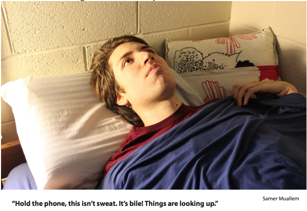 It was only when he moved his legs a little that he realized his sheets and boxers were wet with sweat because he had slept beneath too many covers because he had been cold the night before, even though he knew better. He reported that the sheet stuck to his thighs when he tried to get out of bed. According to Harvey, he also realized that he had drooled a little.