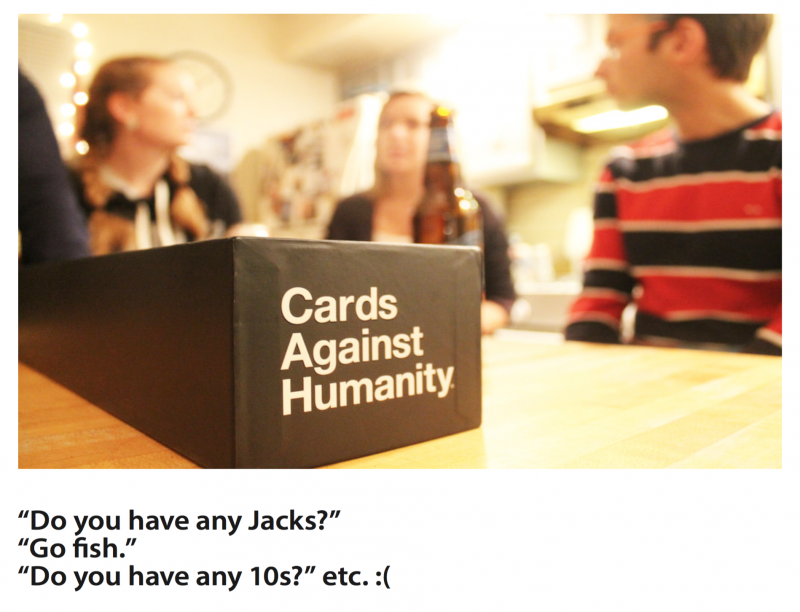 At press time, Espinoza was found once again forcing laughter at his own frantically-chosen, unrelated card and hoping that no one would realize that it was his.