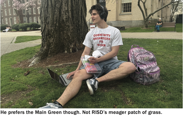 “Yeah, I get the whole artist struggle… but I’m not just an artist,” said Xander Fieldman after coughing from his cigarette, a fifth-year dual degree student studying Painting at RISD and Econ at Brown. “It’s like, I’m really happy you’re happy your art portfolio got you into an unpaid artist residency in Milwaukee, but like, my stock portfolio just got me recruited at Goldman Sachs.”