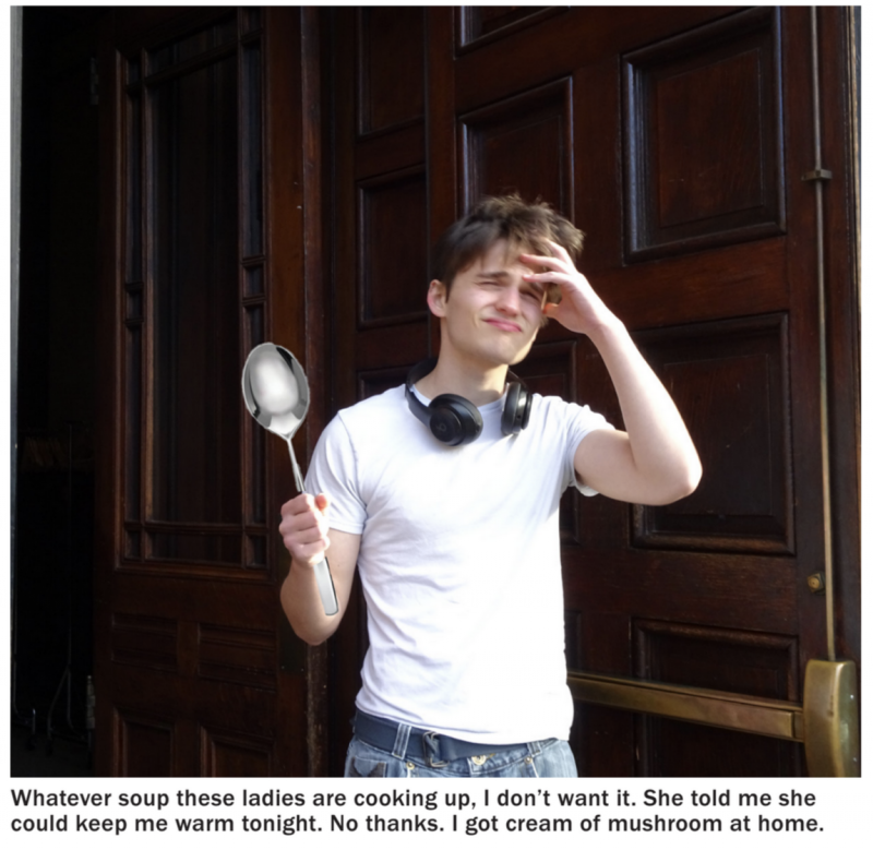 “I’m like four, five bread bowls deep at this point, so I’m pretty far gone, but I remember seeing a sign that said Hot Ladles Ready For Action, and that’s an offer I’ll never refuse,” recounted the cream of mushroom connoisseur, breaking out a jug of chicken stock after misreading a stop sign. “Naturally, I came prepared, so I whip out my Swiss Army spoon and get ready to chow down. Next thing I know, I’m laying on a chinchilla-skin chaise longue, there’s naked women all around me, and I just keep thinking, ‘Where’s the goddamn minestrone?’”
