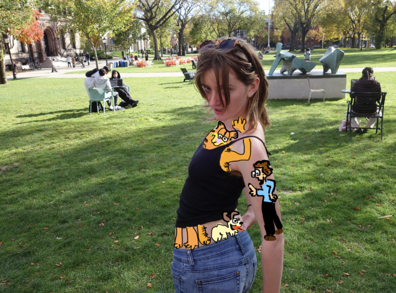 “This one’s more subtle, but I always wear low-waisted jeans so his little yellow head can peek out,” Kleeson added, turning around and carefully pulling down his pants so his tramp stamp of Odie the dog was fully visible. “Historically, this has been the first thing people notice when I’m naked. And they love it! But now, compared to the Garfield tattoo, the Odie’s just less sophisticated. Kinda like… in the comics.”