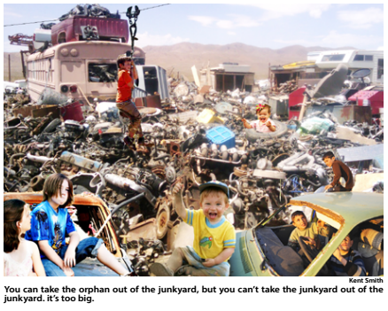 Dougboy, Bottlecap, Boomer, SeaBreeze, Lila, Jasper Phillip, Taz, Crinkles and Petrov make up the Torqueheels, one of the junkyard’s most successful syndicalist communities. As the population grows, though, they’ve had to contend with other groups for territory, something that most orphans get to do in a safe, controlled environment.