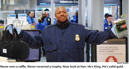 “It’s not fair,” said a fellow agent who asked to remain nameless. “Gerry’s a joke. He lets nail clippers and corkscrews through maybe four, five times a year, and yet he’s the one who finds a bomb? Give me a break.”