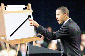 “There’s nowhere to go but up,” remarked President Obama at Monday’s press conference. “As long as we make the arrow go up on this chart behind me, we’ll probably be okay.” He added, “Well, at least I think that’s true. What I know for sure is that down is definitely bad. Probably. No, yeah, we should stay away from down.”