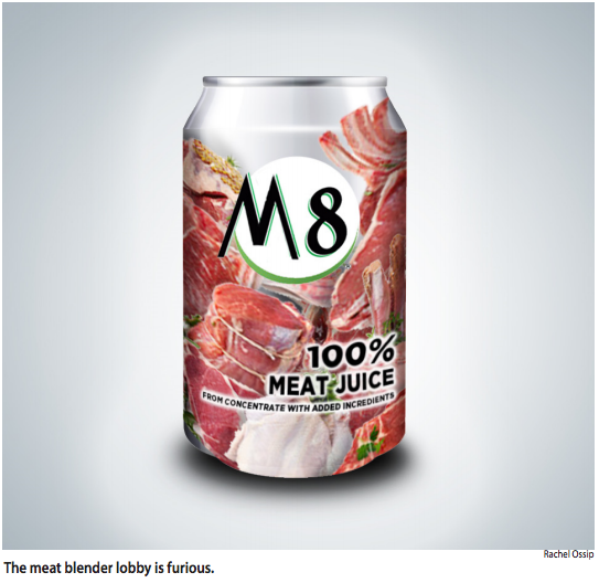 While advocates and customers agree that the flesh-based smoothie will not replace a balanced meal entirely, M8 remains a savory way to easily ingest all eight daily recommended servings of vitamin-rich meat.