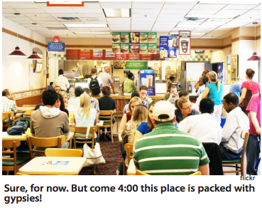 In addition to groups consisting of whites, blacks and Latinos, there was also a table consisting of one or two from each demographic. “That’s really something,” commented local medical student Wayne Burns. “Every kind of American seems pretty well-represented in here. It’s a real American smorgasbord.”