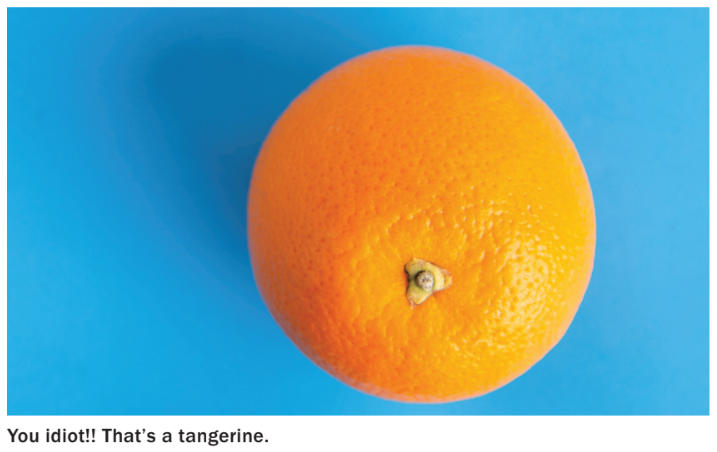 An orange has been reported to actually be more yellow than orange. “Be a lemon or be nothing,” yelled color theorist Imogen Planck tearfully at the so-called orange. ”I hate you!" At press time, violet blue.