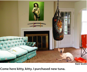 “That should just about do it,” said the terrifying man as he stepped back to get a better look at the naked tattooed woman next to his mounted samurai sword and nunchuck collection. “It looks great.”