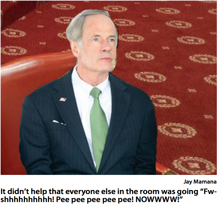 “I really have to pee but he’s talking and I’d feel guilty if I just got up and went right now,” said Wyden, who sat with his hands over his lap trying not to think about his ever-expanding bladder. “I’m waiting for indications that maybe he’s almost done talking, but people say he’s gonna be going for a while. I have to pee so bad.”