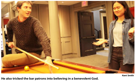 One regular at Salty’s Tavern, Joe Curtis, was taken in by the swindler and played nearly three games before realizing pool is a boring waste of time.