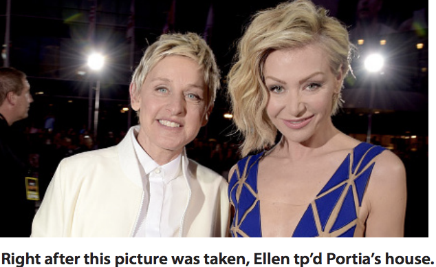 At press time, Degeneres was hiding behind their front door to jump out and scare Di Rossi when she got home.