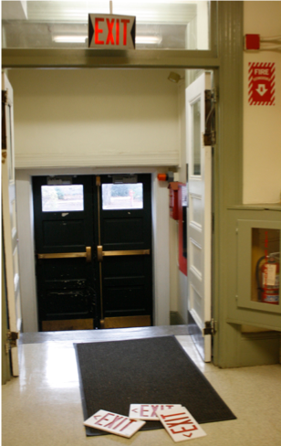 “I’m not even an important exit sign,” blubbered the surviving sign, choking back tears. “Some of these guys were right in front of high-traffic doors! I’m young, I don’t have a family to go back to. Why couldn’t I have been broken instead of Johnson so his little light fixtures could grow up having a father?”